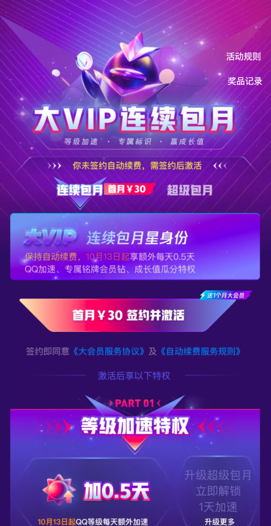 QQ大会员连续包月特权活动:为您的QQ等级加速!