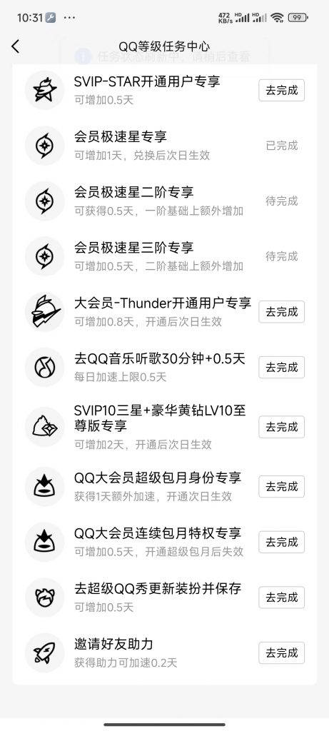 [加速优势] 通过完成这项任务,你不仅能展示你的个性化形象,更重要的是,你的QQ等级将额外增加0.5天的加速。这对于积极提升QQ等级的用户来说,无