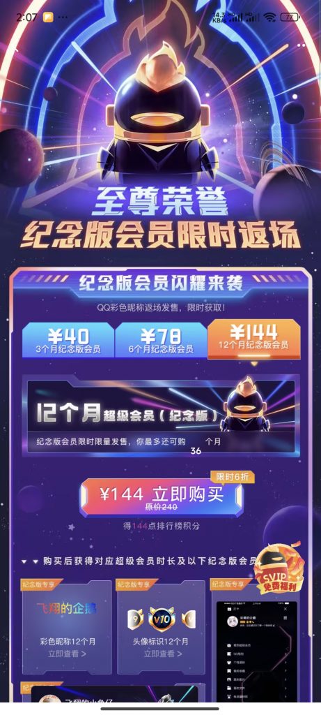 在大会员折扣礼包专区,用户可以获得包含大会员天数、星际穿梭装扮等特权的月卡或年卡礼包。同样,这些礼包中也包含了QQ等级加速包,进一步加速QQ等级的提升。