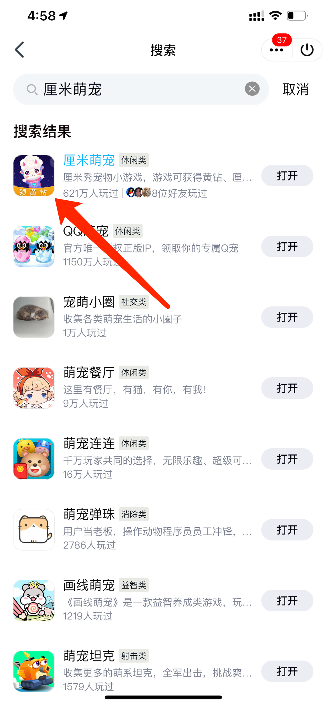 QQ小程序里找到“厘米萌宠“即可进入