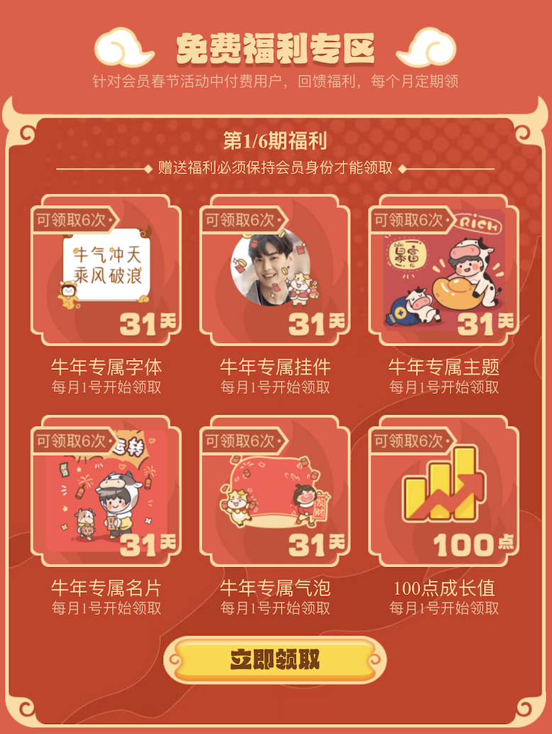 且参与了本次活动的用户, 接下来每个月1号还可以再免费领取成长值或者气泡