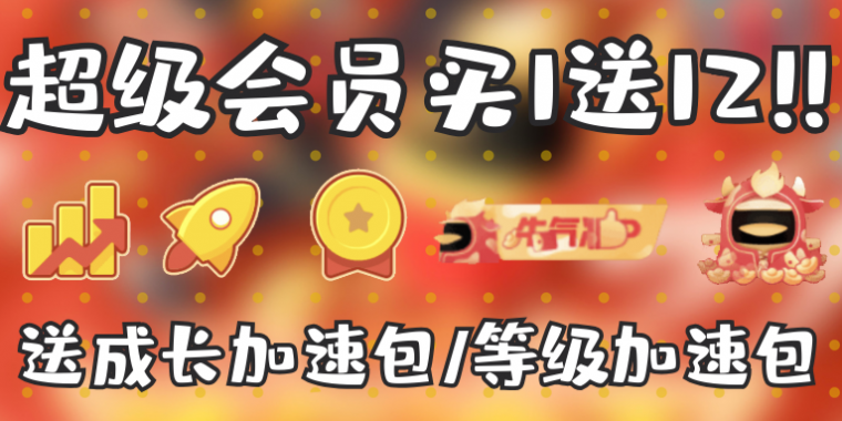 QQ新春充值活动:超级会员买1增12!送成长加速包,等级加速包等血赚!